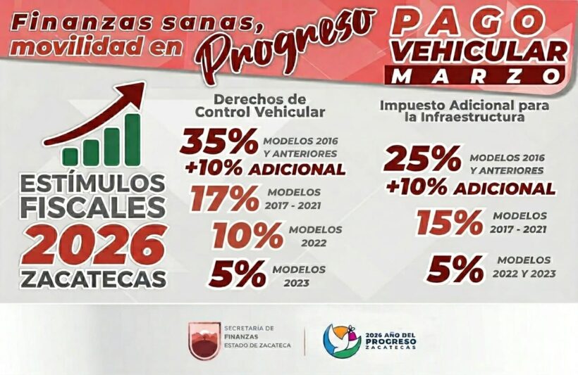 En el marco del 2026, Año del Progreso, el Gobierno de Zacatecas, encabezado por el mandatario estatal David Monreal Ávila, a través de la Secretaría de Finanzas (Sefin), continúa con estímulos fiscales, vigentes durante el mes de marzo, orientados a facilitar el cumplimiento de las obligaciones vehiculares y contribuir al […]