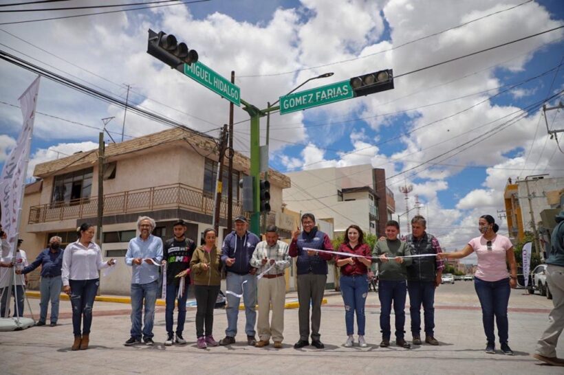 El Presidente Municipal, Saúl Monreal Ávila, entregó la rehabilitación del cruce de la avenida Hidalgo y calle Gómez Farias, el cual se encontraba en condiciones deplorables y era indispensable la intervención.