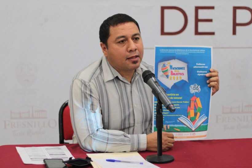 Para acercar a los niños fresnillenses a la lectura, se presentó en conferencia de prensa la convocatoria para el evento anual “Mis vacaciones en la biblioteca”, que tendrá lugar del 24 de julio al 4 de agosto, tanto en la Biblioteca Central Municipal de Fresnillo, frente al Monumento a la Bandera, como en las 10 bibliotecas restantes del municipio.