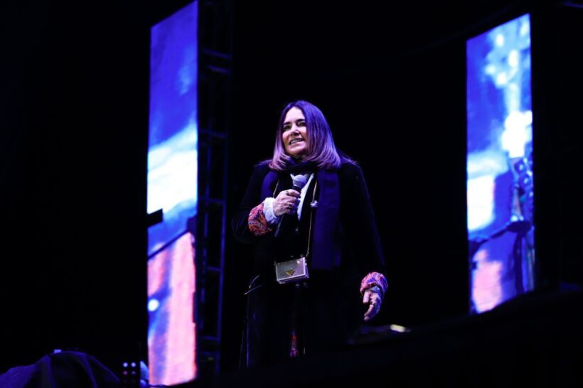 Agradecida de inaugurar este foro, ubicado a un costado del Ágora José González Echeverría, la cantante peruana agradeció al alcalde Javier Torres Rodríguez por la invitación a la Semana Cultural 2025, evento que celebra la historia, tradiciones, música y talento de Fresnillo.