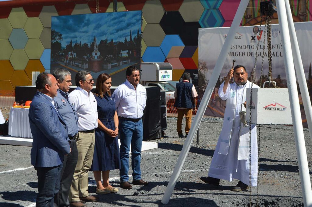 En un simbólico evento se colocó la primera piedra del monumento a la Santísima Virgen de Guadalupe, esfuerzo realizado por Minera Fresnillo y el Sindicato Nacional Minero Metalúrgico (SNMM) FRENTE con el apoyo y respaldo del Gobierno Municipal que encabeza el alcalde Javier Torres Rodríguez.