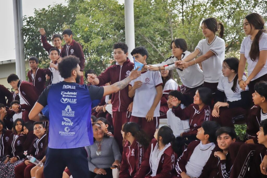 Como parte de las acciones de prevención del delito que desarrolla el gobierno local, en la Escuela Secundaria Técnica No. 72 Octavio Paz se realizó una convivencia con el equipo de basquetbol profesional Gambusinos de Fresnillo.