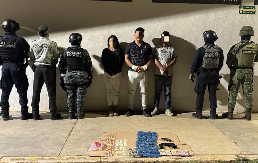 Además, aseguraron dos armas de fuego cortas, 17 cartuchos útiles, 46 dosis de hierba verde y seca con las características de la marihuana, 144 dosis de la droga conocida como cristal y 56 dosis de probable cocaína.