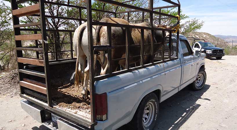 Como parte de los operativos de la SSP para inhibir la comisión de delitos en dicho municipio, elementos de la PEP realizaban recorridos de vigilancia en esta comunidad, donde detectaron dos camiones en los que transportaban las reses; solicitaron a los conductores la documentación que acreditara la propiedad del ganado y las guías de traslado.