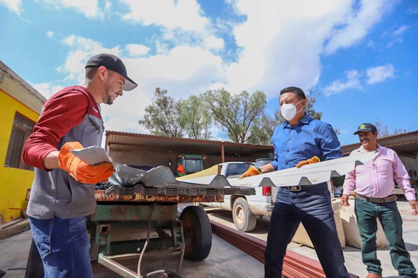 Juan Manuel Loera López, Secretario de Gobierno en conjunto con Rafael Covarrubias, titular de Desarrollo Agropecuario y Jorge Alonzo González, encargado de la Vinculación con la comunidad de Minera Juanicipio fueron los encargados de hacer entrega de los insumos en una primera etapa para que los beneficiados realicen el gallinero.