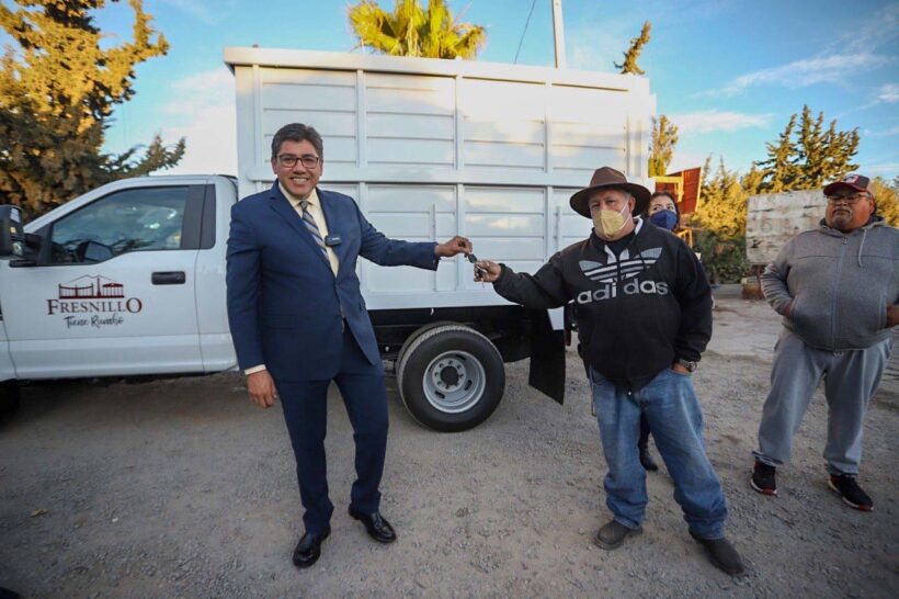 El presidente municipal, Saúl Monreal Ávila, realizó la entrega de una camioneta de tres toneladas al Departamento de Limpia con el objetivo de mejorar la recolección de basura en El Mineral.