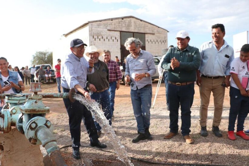 Posteriormente, Saúl Monreal cortó el listón inaugural de los trabajos de rehabilitación que se realizaron en el pozo de la comunidad La Manga para mejorar el abasto de agua potable de los habitantes del lugar, así como de ranchos vecinos.