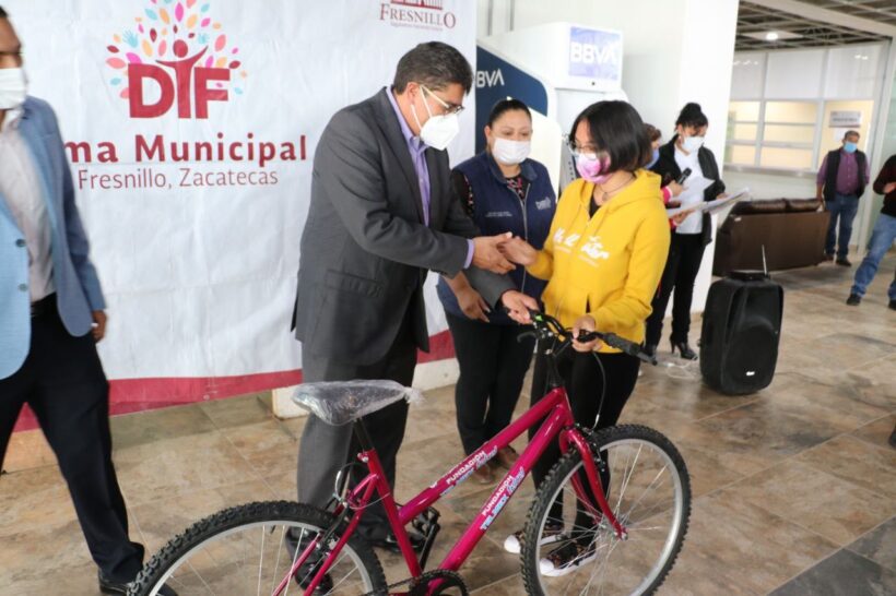 En las instalaciones de la presidencia municipal se realizó la entrega de bicicletas a los ganadores del concurso “mi vida en pandemia” que puso en marcha el Sistema Estatal para el Desarrollo Integral de la Familia (SEDIF) para conocer la experiencia de los niños y jóvenes fresnillenses durante la pandemia.