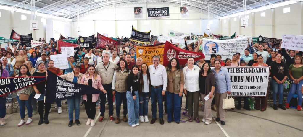 En el auditorio de la Escuela Secundaria Número 1, en Fresnillo, el mandatario estatal destacó que este programa forma parte de un proceso de transformación nacional orientado a fortalecer la justicia social y el desarrollo con la participación directa del pueblo.