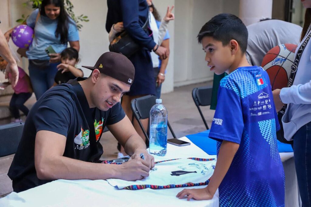 Los integrantes del equipo de basquetbol Gambusinos de Fresnillo convivieron con la afición local en la firma de autógrafos que tuvo lugar en la Casa Municipal de Cultura Mateo Gallegos de cara al final de la temporada regular de la Liga Caliente MX LNBP.