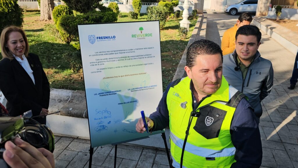 El alcalde, así como regidores, vecinos y alumnos de la primaria Beatriz González Ortega, bachillerato de la Universidad Autónoma de Durango y del Instituto Educativo Monreal Sandoval firmaron un acuerdo para comprometerse a cuidar y mantener el espacio en condiciones adecuadas para el beneficio de todos.