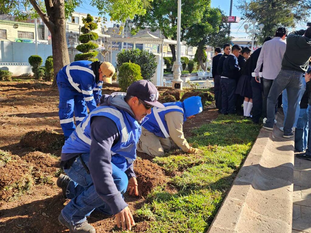En este sentido, previo a colocar el pasto, se preparó la tierra con lluvia sólida para mantener el suelo húmedo y favorecer el ahorro de agua, explicó Luis Fernando Badillo Méndez, secretario de Servicios Públicos.