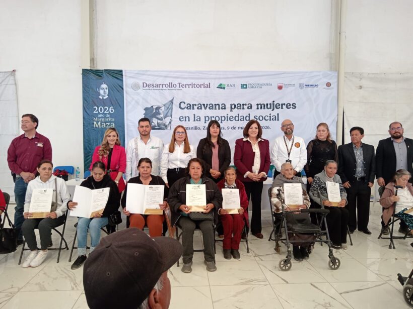 La mañana de este lunes, se llevaron a cabo, en el Salón Ejidal, las “Caravanas para Mujeres en la Propiedad Social”. Con la presencia de la titular del Instituto Municipal para las Mujeres de Fresnillo, María de los Ángeles Macías Bonilla en representación del Presidente Municipal, Javier Torres Rodríguez; fue acompañada de María de la Luz Dorado Ávila, Titular de la Oficina de Representación de SEDATU (Secretaría de Desarrollo Agrario, Territorial y Urbano); José Lenin Rivera Uribe, Magistrado del H. Tribunal Unitario Agrario; la encargada de la Representación del Registro Agrario Nacional en Zacatecas, Rita Guadalupe Díaz González y Alejandro Magallanes de la Procuraduría Agraria en la entidad.