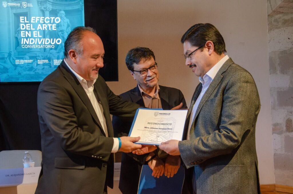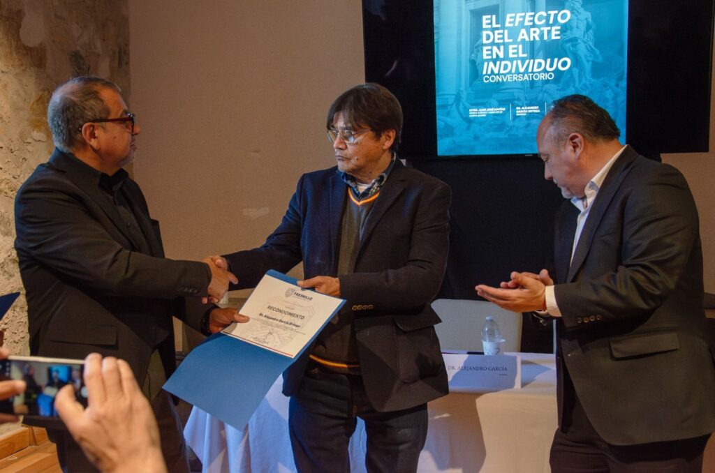 Los especialistas Doctor Alejandro García Ortega en Literatura, Maestro Juan José Macías en Artes Plásticas y el Maestro Alfonso Vázquez Sosa en Música; expusieron desde sus respectivas experiencias la vinculación de las artes en las manifestaciones humanas.