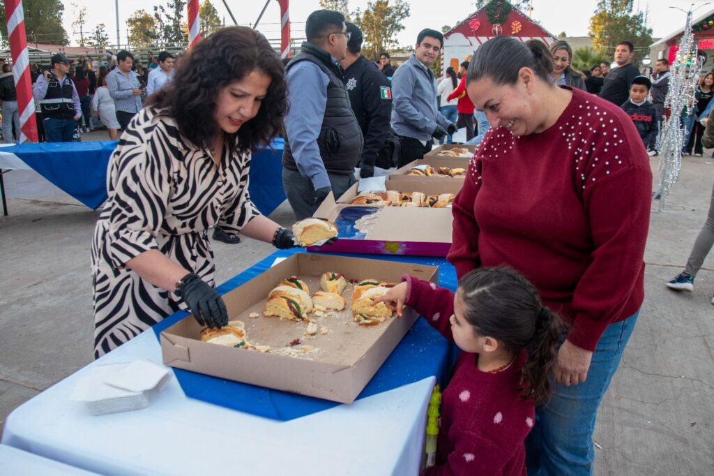 Para mantener vivas las tradiciones y fomentar la convivencia familiar, el alcalde Javier Torres Rodríguez y la primera dama Wendy Reveles Acosta encabezaron la tradicional partida de Rosca de Reyes que se realizó en el Monumento a la Bandera.