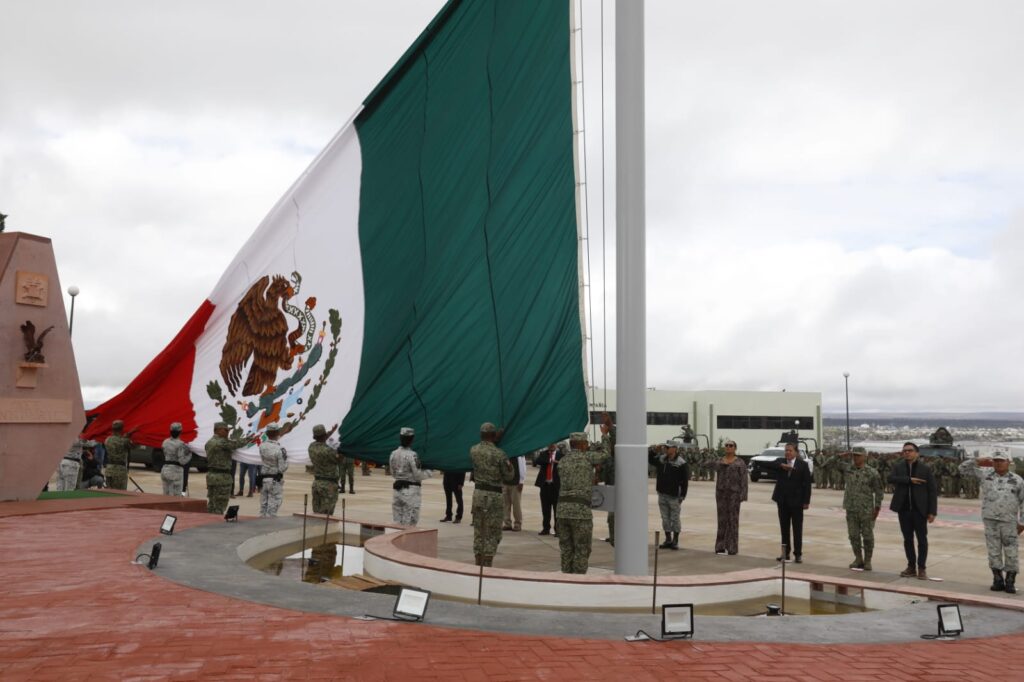 Lo anterior durante la ceremonia de Honores a la Bandera que encabezó en el municipio de Fresnillo, en la cual hizo un reconocimiento al Ejército Mexicano, a la Guardia Nacional, a las policías estatales y municipales, a las fiscalías y a quienes conforman la Mesa Estatal de Construcción de Paz porque hoy se da cuenta de un Zacatecas distinto.