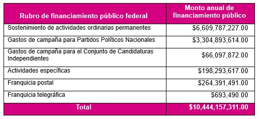 Con base en la fórmula establecida en la Constitución, se avala el financiamiento público de los partidos políticos para el ejercicio 2024