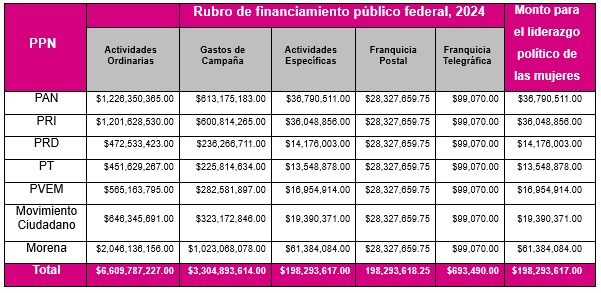 El financiamiento que corresponde a cada partido político para el ejercicio 2024 es el siguiente: