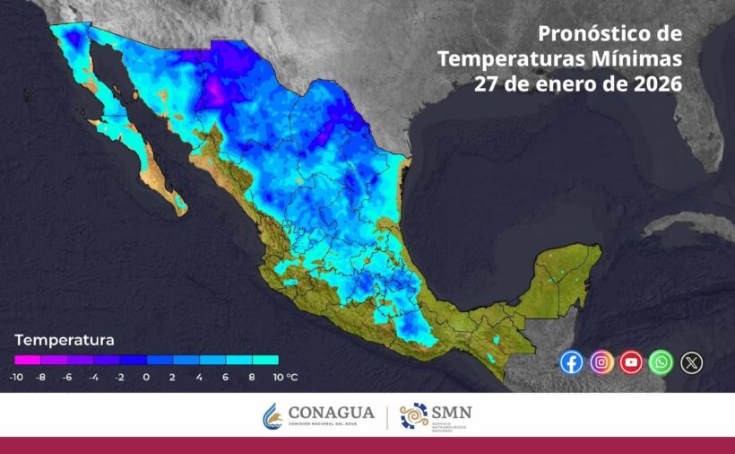 La masa de aire ártico asociada al Frente Frío Número 30 continuará provocando chubascos y lluvias fuertes a muy fuertes en el oriente y sureste del país. Simultáneamente persistirá el evento de Norte con intensidad crítica registrando rachas de viento de 90 a 110 km/h en el Istmo y Golfo de Tehuantepec así como de 50 a 70 km/h en Veracruz y Quintana Roo, mientras que en la Mesa del Norte y la Mesa Central, incluido el Valle de México, prevalecerá un ambiente de muy frío a gélido con densos bancos de niebla matutinos.