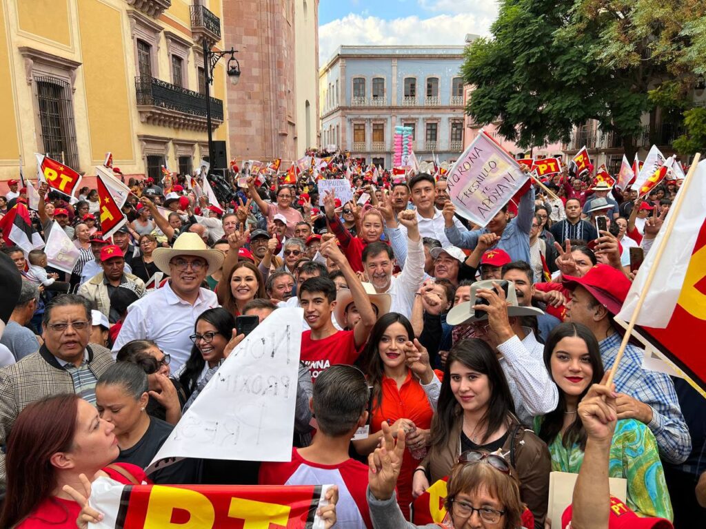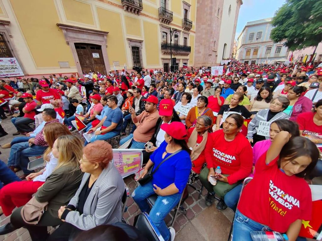 Arropado por miles de zacatecanos que se congregaron el domingo 27 de Agosto en la Plazuela Miguel Auza de la capital, Geovanna Bañuelos recordó que Fernández Noroña “tuvo la valentía, el coraje, la determinación de enfrentar a quien entonces era el hombre más poderoso, pero también el más corrupto, al que le debemos tanta sangre y tantos muertos: Genaro García Luna”.