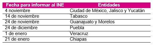 En consecuencia, los partidos políticos nacionales deberán informar al INE a más tardar un día antes del inicio de la precampaña correspondiente, cómo aplicarán la competitividad en la postulación de mujeres a las candidaturas a gubernaturas y la Jefatura de Gobierno de la Ciudad de México.