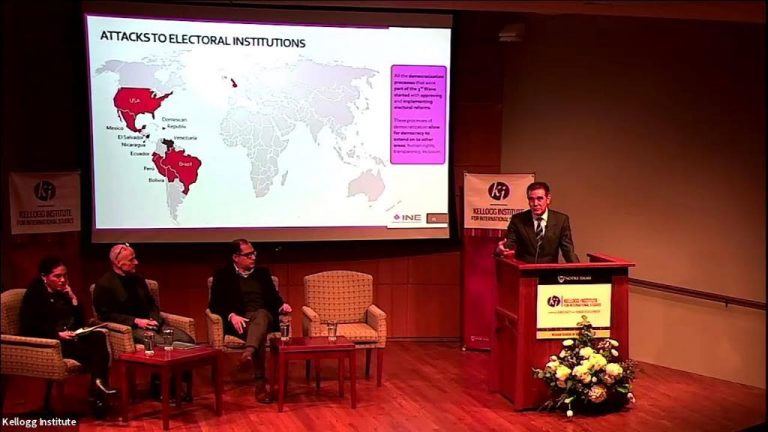 Durante el panel se contó con la participación de Abby Córdova, profesora asociada de Asuntos Globales en la KeoughSchool of Global Affairs; Aníbal Pérez-Liñan, profesor de Ciencias Políticas y Asuntos Globales en la Universidad de Notre Dame, así como con la moderación de Julio Juárez Gámiz, profesor del Centro de Investigaciones Interdisciplinaria en Ciencias y Humanidades de la Universidad Nacional Autónoma de México (UNAM).