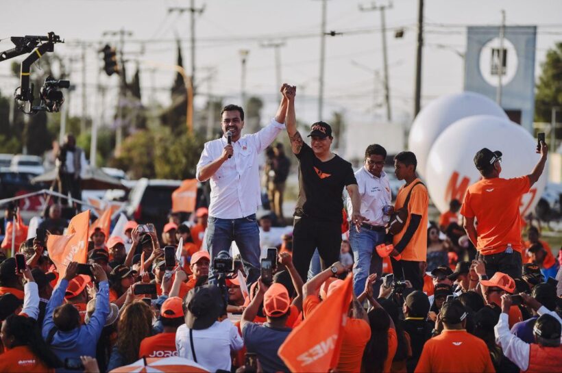 “Esta campaña la están haciendo jóvenes estudiantes en libretas, la están haciendo estudiantes en pizarrones, la están haciendo estudiantes que ponen nuestra canción en su fiesta, la están haciendo estudiantes que se suben bailando la canción a TikTok”, mencionó Máynez.