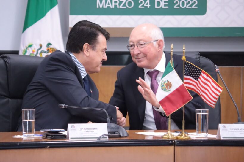 En ese sentido, explicó que, tan solo en la Cámara de Diputados, el diálogo parlamentario con los Estados Unidos se da por tres vías: “En primer lugar, a través del Grupo de Amistad, que hoy nos convoca; en segundo lugar, por conducto de las reuniones interparlamentarias México-Estados Unidos, con la Cámara de Representantes; y en tercer lugar, por medio de actividades de diplomacia parlamentaria y los encuentros que mantenemos con las distintas secciones de la Embajada de Estados Unidos en México, desde la Comisión de Relaciones Exteriores que me honro en presidir”.
