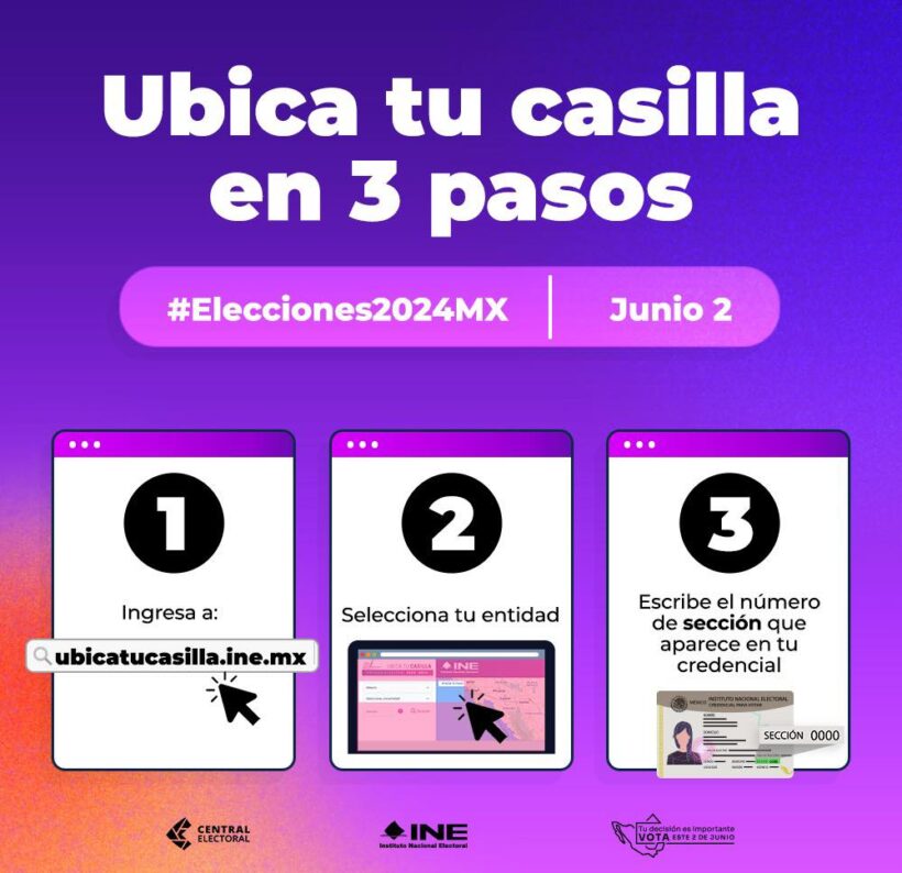 En el marco del Proceso Electoral 2023-2024, el Instituto Nacional Electoral (INE) habilitó la plataforma digital Ubica tu Casilla 2024, disponible en la página https://ubicatucasilla.ine.mx/, en la que las ciudadanas y los ciudadanos pueden encontrar la dirección exacta donde les corresponderá votar en la Jornada Electoral del próximo 2 de junio.