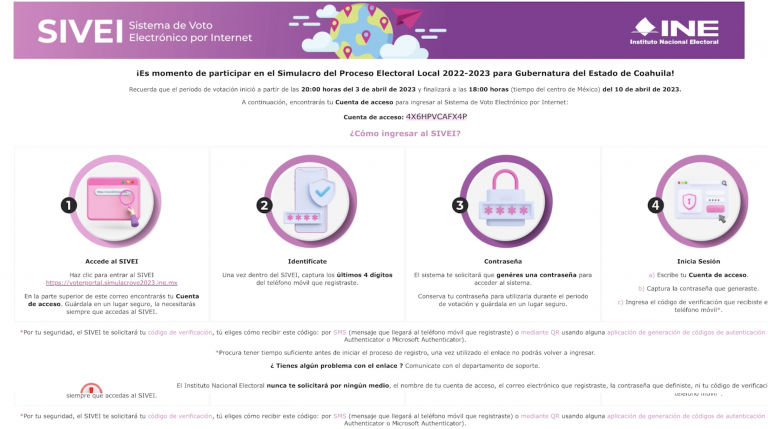El Sistema de Voto Electrónico por Internet (SIVEI) del Instituto Nacional Electoral (INE), mediante el cual las mexicanas y los mexicanos residentes en el extranjero originarios de Coahuila y Estado de México podrán votar en los comicios locales 2023, cumple con los requerimientos técnicos establecidos en la normatividad electoral vigente.