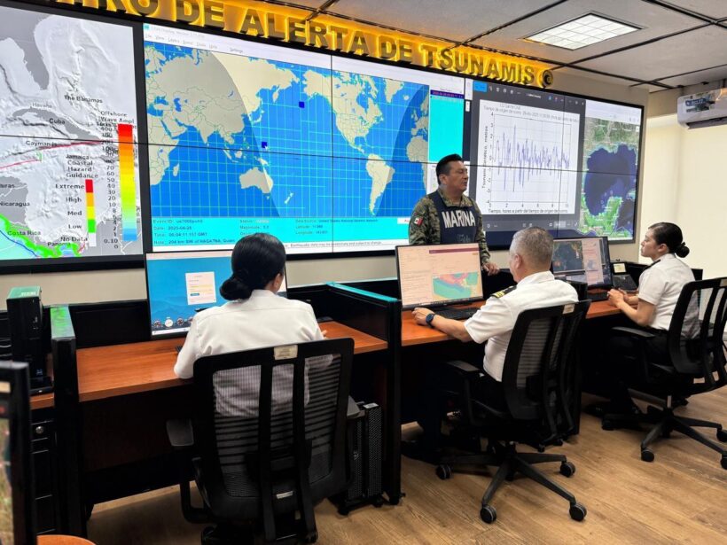 El Centro de Alerta de Tsunamis de la Secretaría de Marina (Semar), junto con sus medios redundantes Alterno y Móvil, participó en el Primer Simulacro Nacional 2025 mediante la realización de un Simulacro Nacional de Alerta de Tsunami, en coordinación con los Mandos Navales. Este ejercicio se basó en un escenario hipotético de sismo de magnitud 8.1, que provocaría un tsunami con una altura máxima estimada de 5.1 metros y afectaría las costas del estado de Oaxaca.
