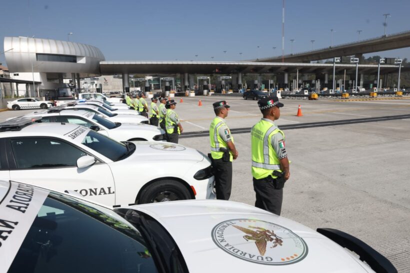 La Guardia Nacional ha desplegado a más de 8 mil elementos, apoyados con 4 mil 500 carros radiopatrulla y helicópteros, para la cobertura de los 49 mil 777 kilómetros de vías federales, además de la presencia en 195 estaciones de seguridad a vías de comunicación y en 60 aeropuertos.