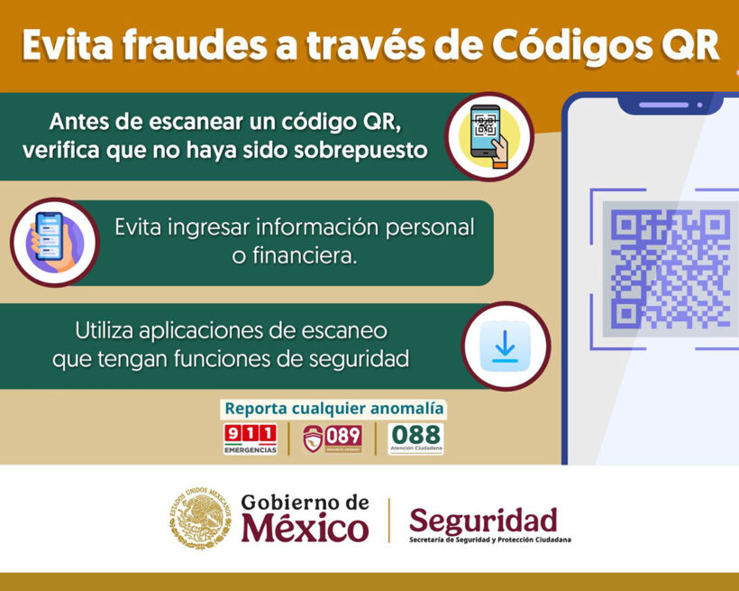 Ante el incremento del uso de códigos QR en diversas actividades electrónicas, la Secretaría de Seguridad y Protección Ciudadana (SSPC), a través de la Dirección General de Gestión de Servicios, Ciberseguridad y Desarrollo Tecnológico, alerta a la población sobre el robo de información personal y financiera por medio de códigos QR falsos y emite recomendaciones para ser víctimas de estos delitos.