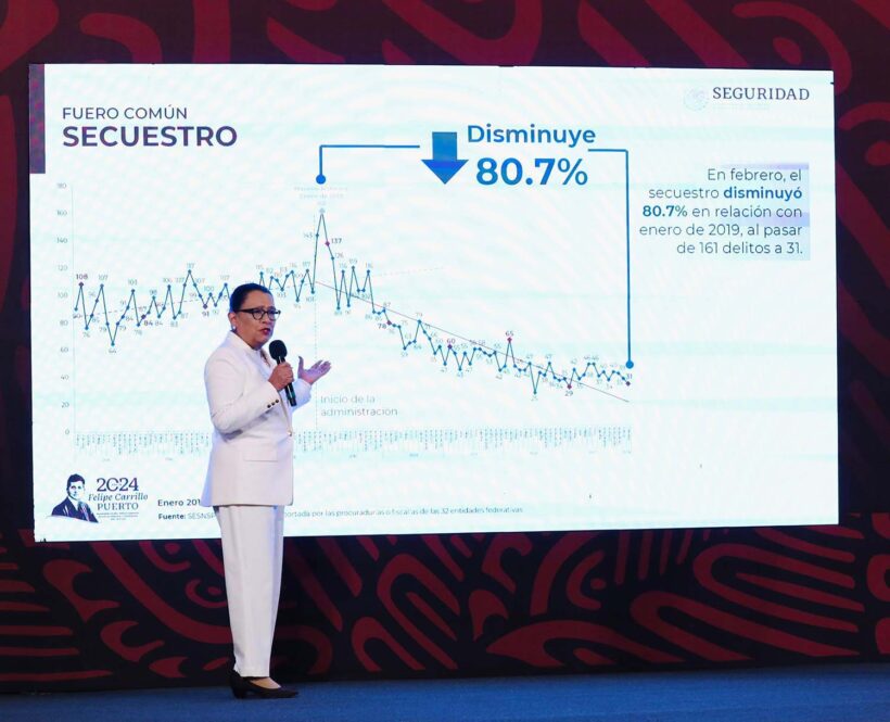 Al presentar el informe mensual de seguridad en la conferencia matutina del presidente Andrés Manuel López Obrador, la funcionaria federal destacó que el secuestro disminuyó 80.7 por ciento con relación a enero de 2019, gracias al trabajo entre la Coordinación Nacional Antisecuestro (CONASE) y las Unidades Especializadas en Combate al Secuestro (UECS).