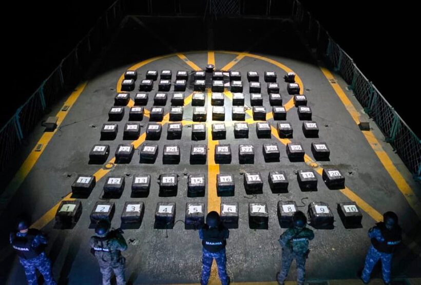 En una operación marítima encabezada por elementos de la Secretaría de Marina (Semar), a través de la Armada de México en funciones de Guardia Costera, en coordinación con la Fiscalía General de la República (FGR) y la Secretaría de Seguridad y Protección Ciudadana (SSPC), se aseguraron 80 bultos con aproximadamente dos toneladas de presunta cocaína, cuyo peso exacto será determinado por las autoridades ministeriales correspondientes.