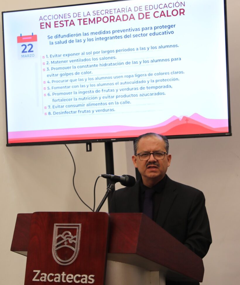 Frente a la ola de calor atípica que se vive en Zacatecas, el Gobierno del Estado, encabezado por el mandatario David Monreal Ávila, a través de la Secretaría de Educación, refuerza las acciones preventivas para proteger y garantizar la salud de quienes integran el Sector Educativo.