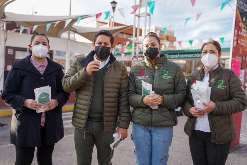En conjunto con la directora del DIF municipal, Claudia Escobedo y la coordinadora de Salud, Fátima Castellón, acudieron a la Plaza Bicentenario para compartir kits preventivos a las y los transeúntes, así como a los choferes de camiones y taxis.