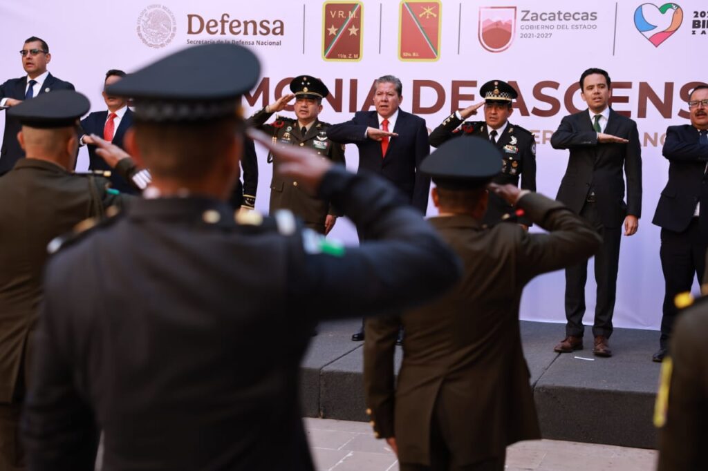 En un acto solemne, el Gobernador David Monreal Ávila presidió la ceremonia de imposición de ascensos y entrega de condecoraciones a personal del Ejército Mexicano y de la Guardia Nacional, en reconocimiento a su mérito, disciplina, esfuerzo y amor a la patria.