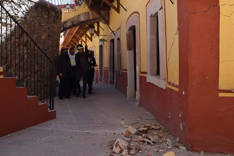 Por disposición del Gobernador David Monreal Ávila, la Secretaria General de Gobierno, Gabriela Pinedo Morales, supervisó las acciones que se realizan en el área que ocupa una propiedad privada anexa al Hotel Mesón de Jobito, tras los daños ocasionados por el hundimiento parcial de la bóveda secundaria 7, en el Centro Histórico.