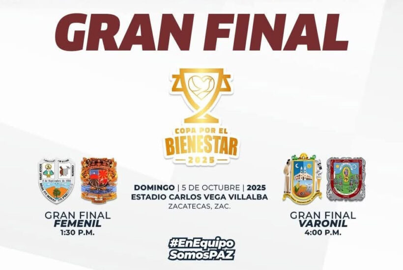 Como parte de las actividades deportivas en beneficio de las y los jóvenes zacatecanos, las cuales contribuyen a la paz y el bienestar social, el Gobierno de Zacatecas, que encabeza el mandatario David Monreal Ávila, realizará la gran la final de la Copa por el Bienestar 2025 el próximo domingo 5 de octubre.