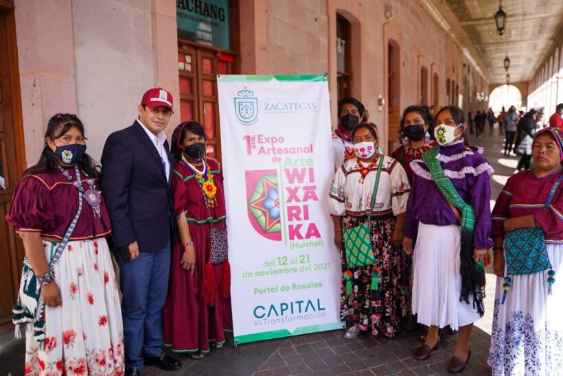 El presidente municipal de Zacatecas, Jorge Miranda Castro recorrió este fin de semana los puestos para refrendar su apoyo a la comunidad wixáricas, quienes realizan artesanías con pasión y dedicación.