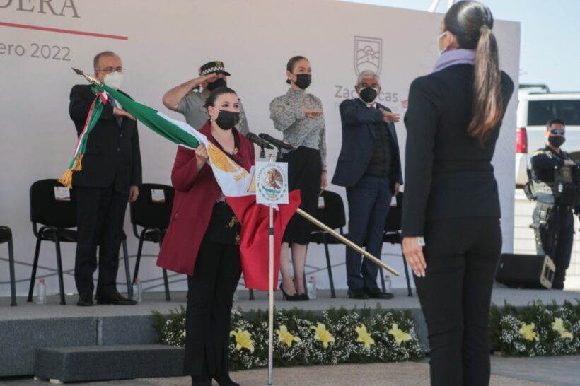 “En nuestra Bandera se encuentra plasmada, además, la unidad que, a pesar de las circunstancias, las y los mexicanos conservamos y, por supuesto, la sangre que derramaron los héroes que nos dieron patria”, dijo la Secretaria General de Gobierno, Gabriela Pinedo Morales, quien fungió como oradora oficial y representante del Gobernador David Monreal Ávila.