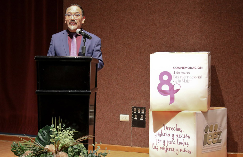 En su discurso inaugural, el Consejero Presidente del Instituto Electoral del Estado de Zacatecas, Juan Manuel Frausto Ruedas, destacó que la conmemoración del 8 de marzo representa una oportunidad para reconocer la lucha histórica de las mujeres por el ejercicio pleno de sus derechos humanos y político-electorales, así como para reafirmar el compromiso institucional de avanzar hacia una democracia paritaria y libre de violencia de género.