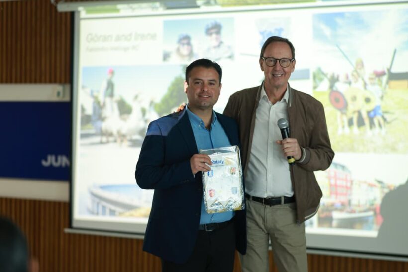 El presidente municipal de Zacatecas, Miguel Varela, junto con la síndico municipal Wendy Valdez Organista y el secretario de Gobierno Erick Muñoz, dio la bienvenida a integrantes de clubes afiliados a Rotary International provenientes de Suecia, durante un encuentro institucional celebrado en la capital del estado.