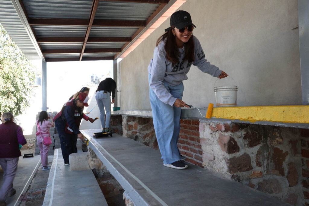 Durante la jornada de dignificación, se llevaron a cabo diversas acciones, entre ellas: pintura de interior y exterior en aulas, rehabilitación de cancelería, pintura de cancha, áreas de tráfico y rampas; además, se entregó mobiliario nuevo, tanto para alumnos como para docentes.