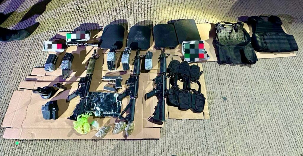 Con esta detención fueron aseguradas cuatro armas de fuego -tres largas y una corta-, 14 cargadores para arma de fuego, dos radios de comunicación, una mira para arma larga, dos portacargadores para arma larga, así como un vehículo Ford Focus.