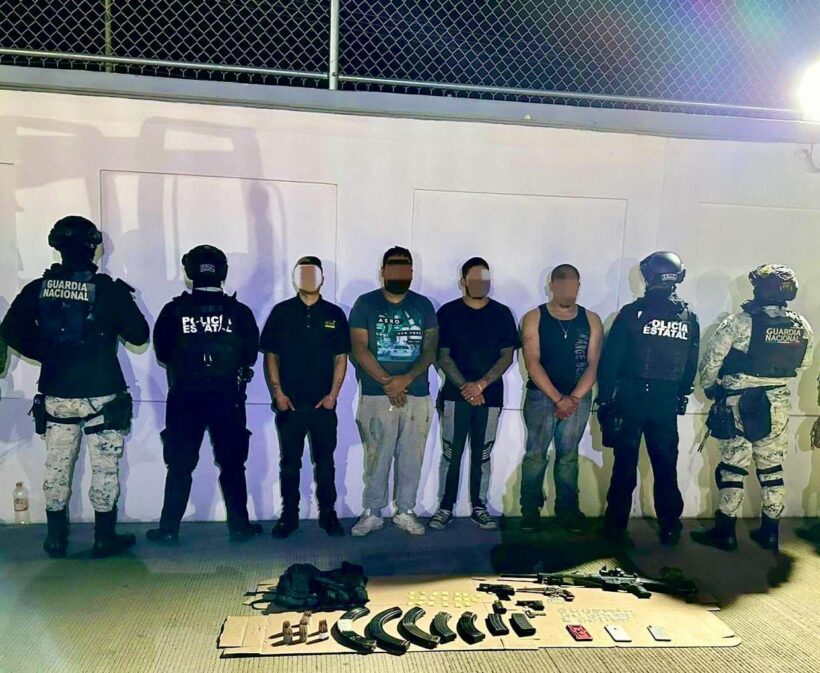 Con esta detención fueron aseguradas cuatro armas de fuego -tres largas y una corta-, 14 cargadores para arma de fuego, dos radios de comunicación, una mira para arma larga, dos portacargadores para arma larga, así como un vehículo Ford Focus.