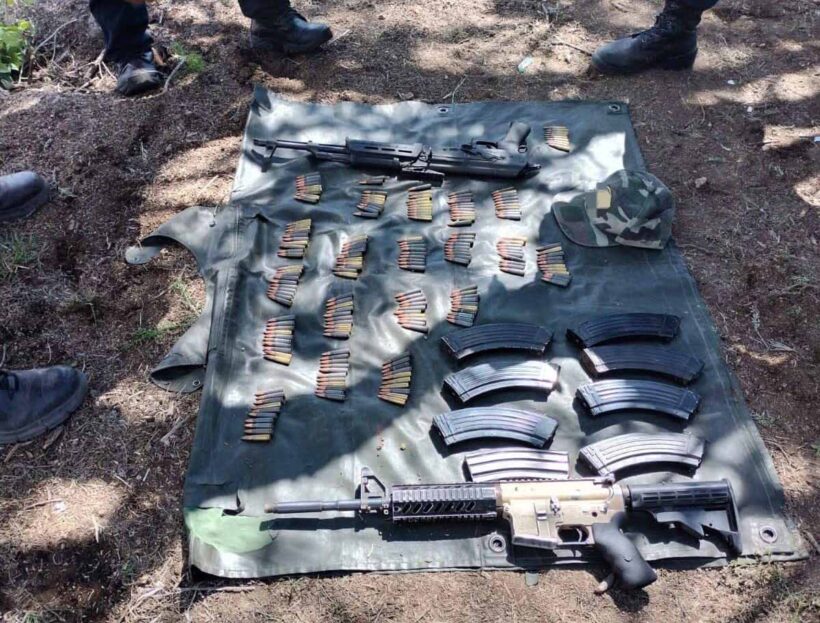 Al inspeccionar tal asentamiento, localizaron un arma R-15 y un arma AK-47, así como ocho cargadores para armas de fuego y 200 cartuchos útiles de diferentes calibres. También, se ubicaron utensilios de cocina, ropa y diversos artículos de uso personal, que fueron destruidos para evitar su reutilización.