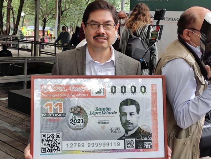 Este domingo fue develado el billete de la Lotería Nacional, conmemorativo a los cien años de la muerte del poeta Ramón López Velarde; asimismo, se llevó a cabo la inauguración de la exposición fotográfica «100 años sin Ramón López Velarde».