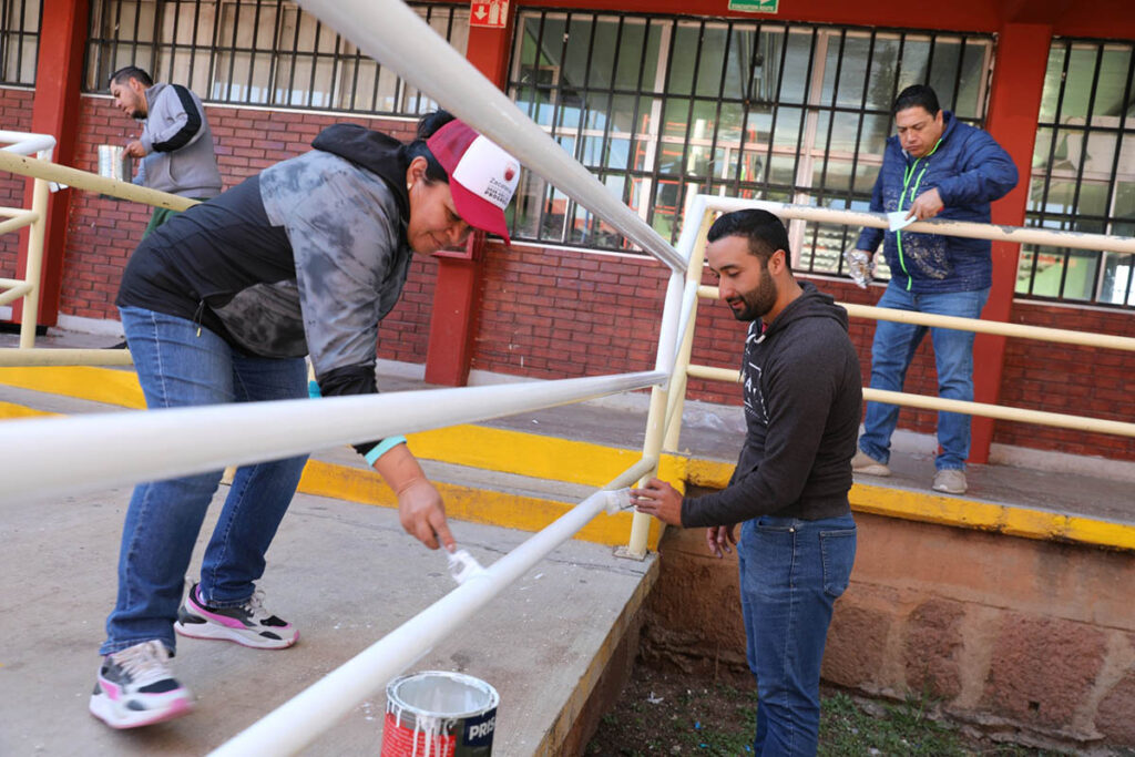 Entre las acciones emprendidas este día destaca la rehabilitación de pintura interior y exterior de aulas, cancelaría, pintura de tráfico, impermeabilización, instalación de lámparas y limpieza general.